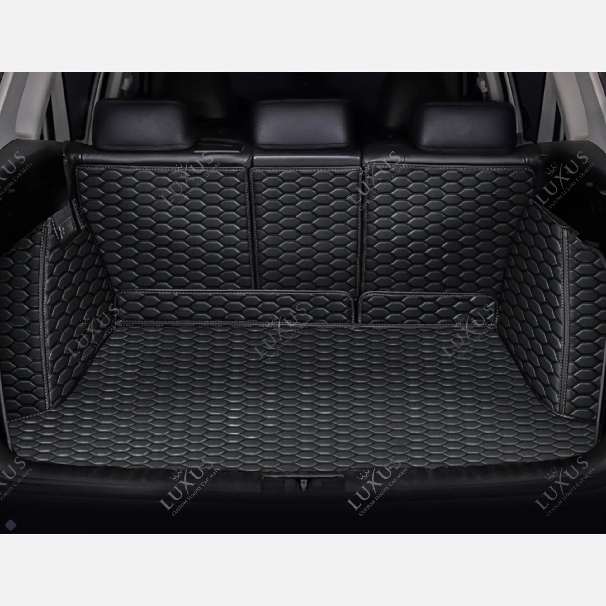 Tapis de Coffre 3D Intégral sur Mesure Premium Luxus – Motif Nid d’Abeille Noir avec Surpiqûres Noires